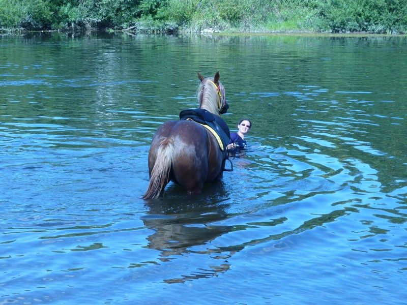 DéconnectéDire merci | Oui, c'est vrai, j'ai pas précisé. Là, elle en avait marre, et ne voulait plus y aller. J'ai pas insisté, ça sert à rien. Sinon, la fois précédent, j'étais à côté, elle avait quelles "brasses", et je me suis accrochée à la selle pour me faire tirer. Pas ce qu'il y a de plus sécuritaire... Mais sacrément sympa! |
