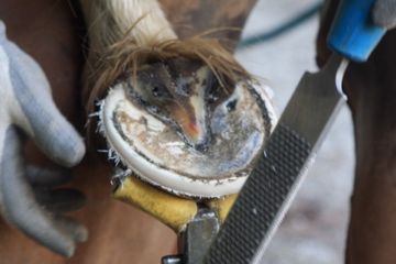 | Dire merci | des petites traces rouges apparaissent (mais c'est déjà le signe que c'est "fini"...) soit en sole soit en fourchette ou en paroi suivant le type de "choc"... souvent du à un parage pas adéquat (trop long en pince par ex) |