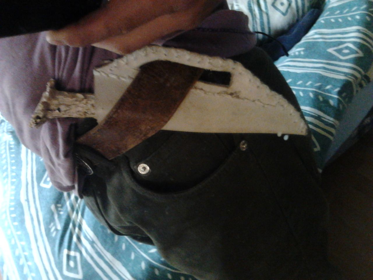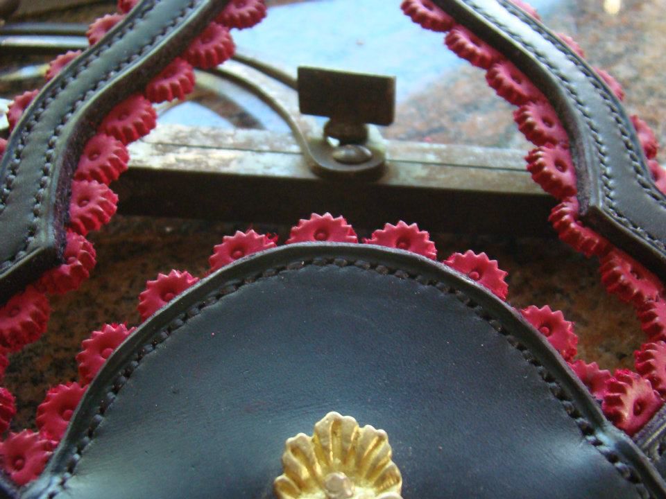 | Dire merci | Papyrus, c'est magnifique ce que tu fais !! Dans le garage, on en a une selle comme ça , très vieille, abimée, on a faillit la jeter Tu sais ce que tu peux faire avec maintenant Moi j'ai commencé bêtement,j'ai cru faire une affaire en achetant une selle a très bas prix soit-disant pour un cheval....quand la selle est arrivée double surprise elle pour poney et très sèche.Je l'ai lavée avec du savon glycérine et là du jamais vu!!!!!le cuir s'est décomposé comme du carton mouillé,tout est parti en lambeaux,l'arçon cassé de partout... Comme je n'en suis pas a ma première selle et que j'ai du cuir a gogo,alors j'ai décidé de faire de cette arçon mangé par les carençons une bonne petite selle de rando pour ma fille! ashtraygirl:Ce n'est pas du cuir blanc là,c'est du gris bleuté et le cuir blanc ne se tache pas,c'est une coloration plastifiée (genre nappa) Si tu veux quelques morceaux de blanc et de gris je t'en envoie,j'ai pleins de petits bouts pour tes bracelets! |