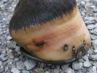 DéconnectéDire merci | c'est un hemathome qui a fait un apces. ton cheval a des bleus dans les sabots a cause de fers trop serres. ça peut occasionner des necroses dans les pieds et ton cheval peut rester handicape a vie. il serait d'ailleurs miraculeux que ton cheval ne boite pas avec des fers pareils. solution : faire revenir ton mf. lui faire constater son travail de cochon et changer pour un mf competant. voila j'espere t'avoir aide. |