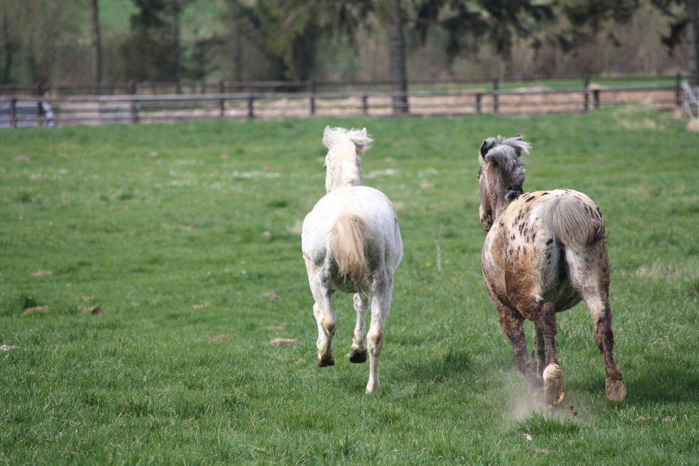 | Dire merci | Les poneys se portent à merveille, ils ont retrouvés la grande patûre des beaux jours et on pas prêts de les rattraper !![]() Le dernier arrivé a l'air plutot bien intégré. J'adorais ce poney depuis gamine au centre équestre, et le fait de l'avoir chez moi m'a permis de me rendre compte que finalement lui non plus n'était pas totalement indifférent envers moi. Eh oui, monsieur me reconnait et fait une réelle différence entre moi et ma mère (qui s'occupe tous les jours des chevaux). J'avouerai que ça flatte pas mal mon ego, j'en profite parce que bientot il accordera autant sa confiance à ma mère ! En attendant voir mon petit Ogway arrivé au grand galop, avant même nos "vieux" pensionnaires, vers moi c'est génial ! On peut dire que je le découvre encore un peu plus, j'ai vraiment l'impression qu'aujourd'hui il a une confiance totale en moi alors qu'au club il devait surement me reconnaitre et apprecier les caresses mais c'est tout... Enfin j'arrête de gagatiser, c'est pas ma faute il m'a toujours fait craquer malgré sa robe (que je déteste) et son allure de petit clown ! ![]() Ah ... et voyez vous même comme ma jument super aimable déteint sur mon petit poney ... Au moins ils font la paire ![]() ![]() |