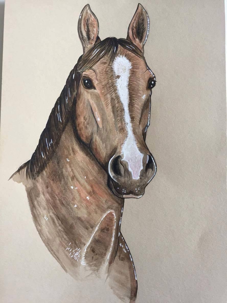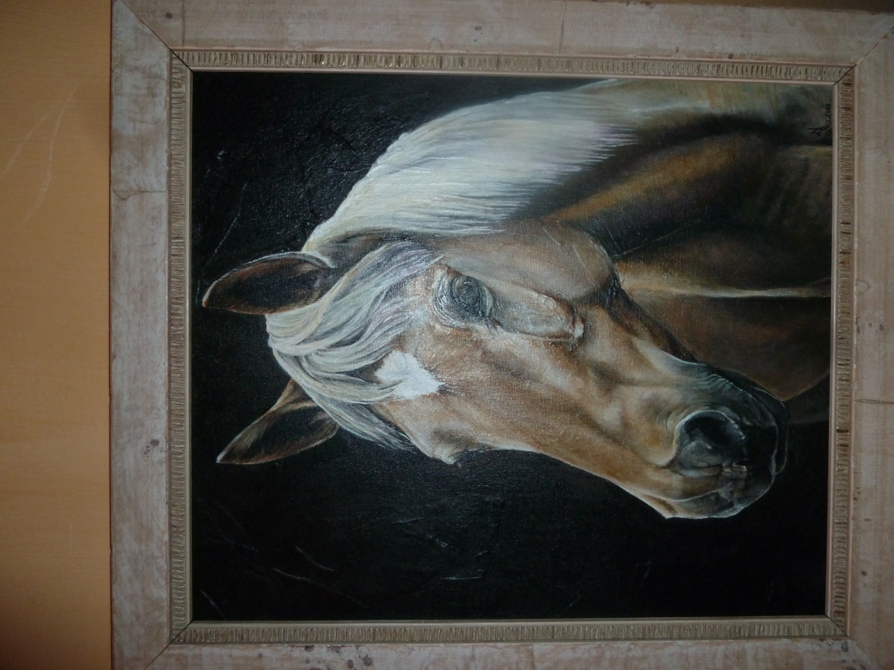| Dire merci | je suis ce post depuis un moment il y a de sacré talents! perso je peint/dessine depuis toute petite, après pas énormément de chevaux j'ai un univers plutôt dark et macabre du coup je vous met une tete de cheval mais mort c'est une peinture miniature dans un cadre ancien ![]() bon aller j'en ai des vivants aussi ![]() |