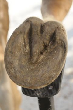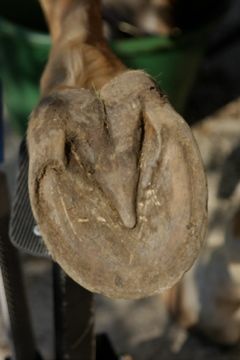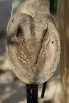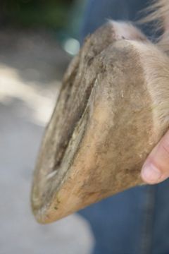 | Dire merci | J'en dis que peu importe la personne c'est la manière de faire et oui un MF est tout à fait capable s'il utilise la méthode adéquate... le problème est que bien souvent ils ne sont pas d'accord avec la "méthode"... Amélie... oui la sole touche... je n'ai jamais de paroi au dessus de la sole ça fait "partie de son pied"... même ferré c'était idem... au mieux j'ai quelques mm qui pousse en talon et c'est tout... d'ailleurs tu vois que lors du parage en râpant la paroi je touche la sole sur un des antérieur (à cet endroit il fait une sorte de "cale" je suppose... ) |