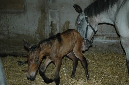 | Dire merci | Ma tchote est née le 19 juin 2007, un mardi, je m'en souviens encore. Depuis le 1 er juin je rentrais ma jument et son copain en box. Certains soir je venais dormir avec. Le samedi et dimanche je suis venue pour dormir, rien a signaler, le lundi mon pére et moi avions dormit a coté, toujours rien. Le mardi je ne suis pas allée dormir car le lendemeain debout à 3H30 pour bosser, et mon pére avait un empéchement qui fait qu'il est rentré tard. Comme je me levais tôt, je suis allée couchée à 21H, tellement crevée que je n'ai pas entendu mon portable, mon frére a dbarqué dans la chambre et a crié "vite le poulain est né". Vite fait je suis parti avec mon férre et ma mére, pour la voir. Elle a 15 min sur lA photo. ![]() Bien sur un big orage en même temps, j'ai du remettre le copain de ma jument en pature, des P****** d'éclairs. Puis je suis rentrée à 23h chez moi pour dormir quelques heures. Le lendemain je suis allée la sortir pour qu'elle voit le jours, heureusement grand soleil. Puis je l'ai rentré tous les soirs pendant 1 mois. Voilou. Maintenant elle a deux ans, que du bohneur |