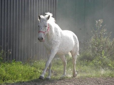 | Dire merci | Là c'est repos au box et travail au paddock à la longe.....le véto a estimé au moins 60% de boulonnais, le reste un anglo... Voilà son foutu caractère... ![]() |