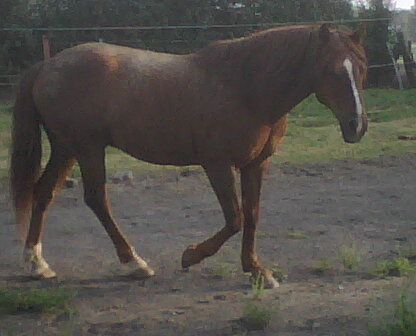 | Dire merci | Il est alezan crins lavés, son père a été importé d'Islande par mon amie il y a 6 ans et quelques (alezan aussi), sa mère, également importée, est pie bai. Je le monte avec ma dressage, en attendant d'avoir les sous d'acheter une islandaise... mais je l'ai pas mal monté avec une islandaise l'année de son débourrage, quand il est retourné quelques mois en pension là où il est né (l'hiver au pré avec le hongre de l'élevage et son père...). J'ai eu la chance de l'avoir très bon marché, à un prix d'ami... |