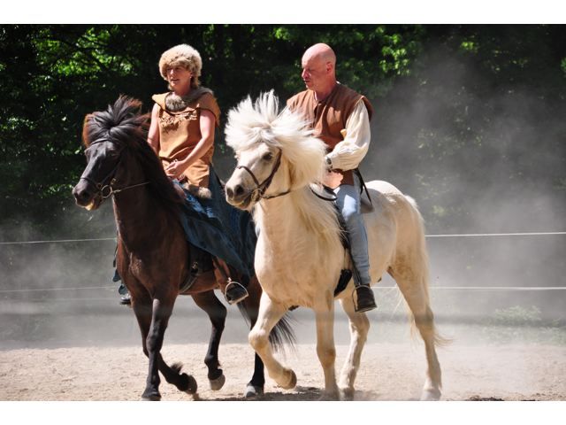 | Dire merci | Bon voilà, essai effectué hier. Oui enfin... on a essayé quoi, vu que j'ai été rappelée en urgence en début de balade, mes autres chevaux étaient sur la route... moi j'avais le cheval d'une amie pour accompagner Hriki. Mais bon, dans l'ensemble ça c'est plutôt bien passé. Pour un cheval qui a été monté 1 fois sur 1 an... (débourrage l'été passé, repos hiver, remonté une fois en mai puis plus eu le temps depuis...) Il s'est vraiment bien comporté. Alors certes, il y a du boulot à faire avec lui, mais bon, c'est un tout jeune cheval.. On a pu faire un peu des allures, il a montré beaucoup de tölt et d'amble, il a très peu trotté. Le monsieur l'a trouvé super confort, gentil, avec un caractère qui lui rappelait un peu celui d'un islandais qu'il a eu un temps. Il reviendra l'essayer une fois tout seul... |