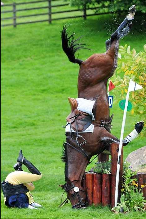 | Dire merci | Perso, avec mon ancien cheval, je compte même plus le nombre de fois où je suis tombé! Tout y est passé: strike, les cotes dans le chandelier, la barre qui me retombe sur la tête,...ect et j'en passe!!!heureusement, a chaque fois plus de peur que de mal, quelques bleus tout au plus^^ |