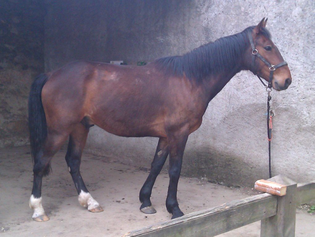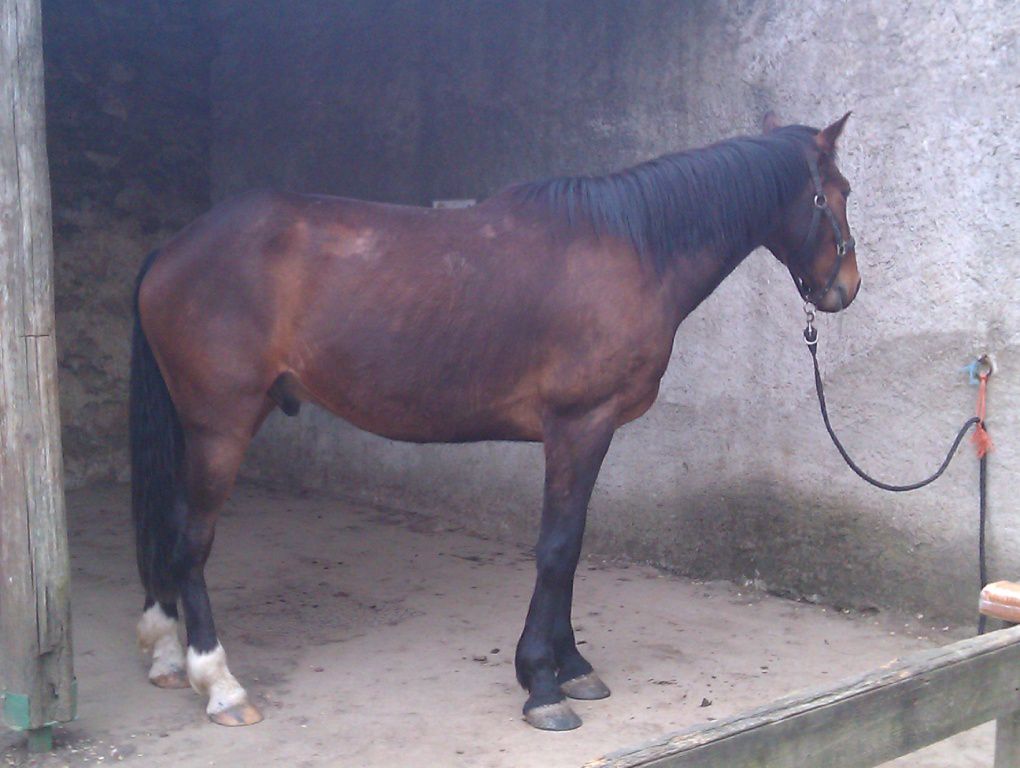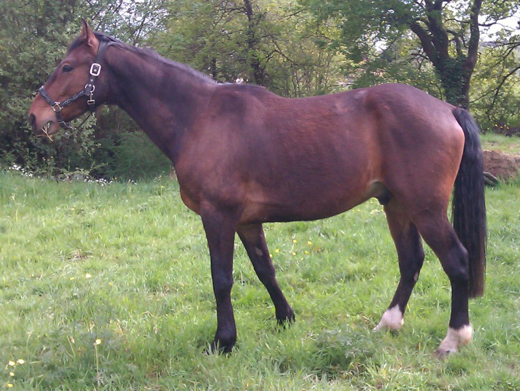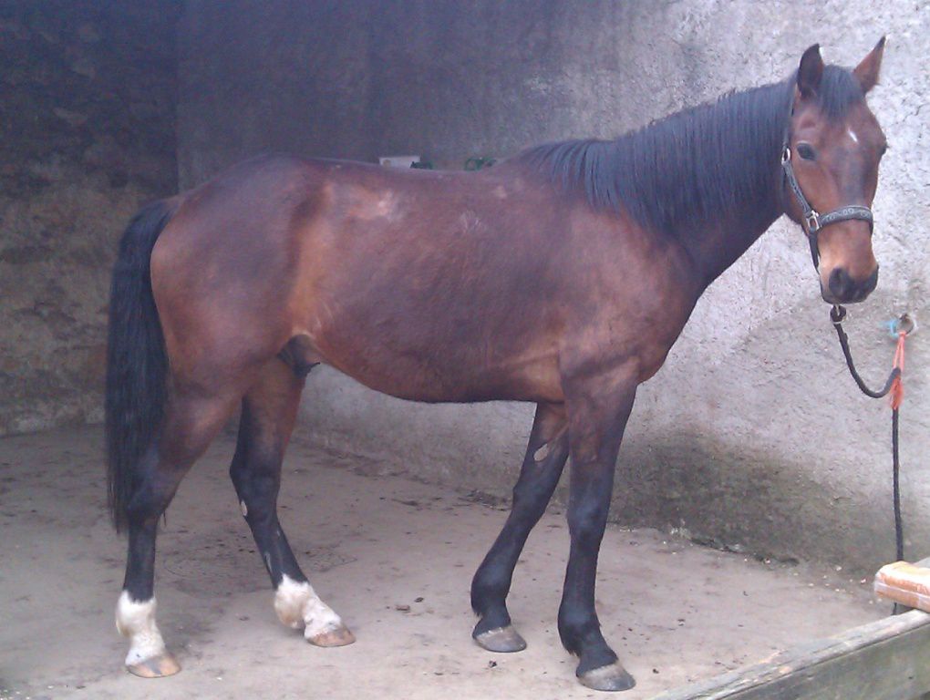 | Dire merci | ciriolla je suis juste à coté de Nantes! Il te faudrait plutot un bon foin ou une bonne pature et juste 2L de granulés pour le symbole. Oui c'est sur, c'est tout ce dont je rêve mais trouvé une pension près de chez moi ca ne court pas les rues, et une pension pré avec du foin de qualité ... Un cheval Tf de 1,70m chez moi c'est 15 kilos de foin de crau/jour..... Peut être la photo est elle trompeuse, mais les cotes sont trop visibles et le cul creux; pas normal pour un TF modèle "anglo normand". Les cotes sont effectivement légerement apparente, ce qui ne me choque pas, je pense qu'il va s'enrober d'avantage en allant dans son pré de printemps MAIS je veux pouvoir sentir ses cotes en effleurant mon cheval... Sinon NON NON NON une seime ne vient pas "comme ça". Elle provient d'un défaut de parage, qui cause un évasement (peu visible si on est pas habitué) et crac, la seime s'ouvre et là un énorme évasement apparait progressivement. Pour ca que j'ai dit "une sorte" de seime , il s'est fait ca en revenant du pré, un coup ou je ne sais pas trop, l'évasement s'aggrave jour après jour...sur tes photo des autres pieds on voit aussi de l'évasement, ce pédicure ne traite pas bien ce problème. Il faut que tu insistes. Les évasements c'est fatiguant à traiter pour le pareur; mais c'est indispensable. Et même en une fois, aucun risque de faire boiter ton cheval ! au contraire, car l'évasement tire la corne vers le dehors et ça fait mal. Je vais effectivement lui en toucher un mot, malheureusement je le redis, des qu'il intervient un peu "fort" mon cheval réagit mal, il préfère il y aller progressivement en traitant le problème sur le fond et pas juste régler l'évasement qui n'est qu'une conséquence... |