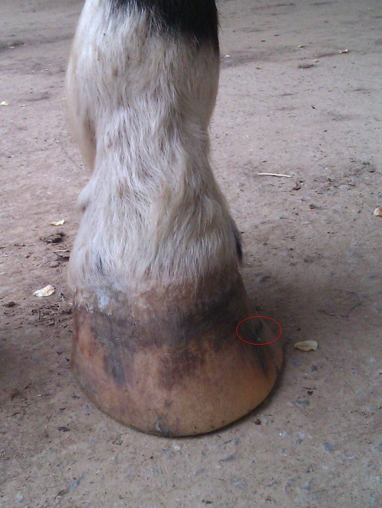 | Dire merci | Merci beaucoup Gypsie. Je ne met absolument pas en doute tout ce que vous me dite bien au contraire. Néanmoins, quand je le vois travailler il passe peu de temps sur le paroi. Je sais qu'il essaie de combattre l'évasement mais en y allant très progressivement. Et je pense que tu parles de cette déformation ![]() J'ai entouré en rouge l'endroit où il a eu son espèce de seime (qui lui a causé un assez gros bleu). Le pareur a rectifié legerement mais encore une fois, mon cheval est hyper sensible et la moindre changement le rend pas super à l'aise... |