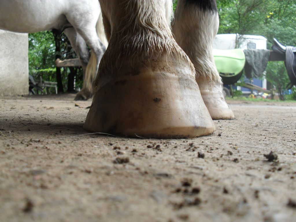 | Dire merci | Alors je vais essayer de répondre un peu aux questions, les pieds restent longs volontairement. Il a toujours été paré long elle ne veut pas lui changer son équilibre trop brutalement. Elle trouve aussi que ses pieds sont encore trop évasés mais pareil elle veut y aller doucement pour ne pas trop fragiliser le pied. Sinon elle a trouvé ses pieds dans un triste état, selon elle ils sont comme ceux d'un cheval tout juste déferré... Les 2ans passés pieds nus ne lui ont pas servi au contraire... Quant à sa méthode elle a sans doute du me le dire mais je ne l'ai pas retenu |