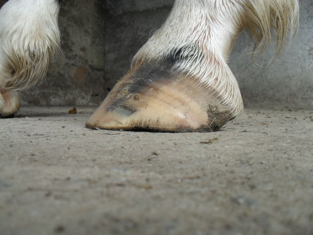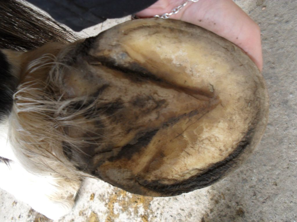 | Dire merci | Merci Tu sais en anatomie tous les termes ont une utilisation précise : interne/ médial = ce qui se situe vers l'axe de symétrie du corps (ton gros orteil est en interne ou médial de ton pied) externe/latéral c'est l'inverse médian c'est le milieu ..... Donc quand je dis la paroi externe c'est la partie externe (talon, quartier et mamelle) de la boite cornée et pas l'avant (la pince) comme tu la montres. Vu de la sole la ligne blanche s'écarte et vu de face ça donne un évasement à cet endroit là. ![]() |