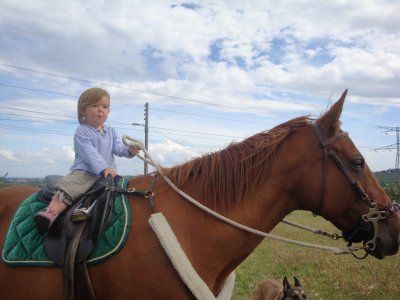 Déconnecté | en ce qui me concerne c'est ma fille aînée qui a commencé à 4 ans, un peu par hasard. à force de la voir faire, cela a réveillé une ancienne envie ; j'ai essayé et de suite je me suis dit " oui c'est ça que j'attends "! aujourd'hui, je continue l'équitation...tout comme mes 3 filles ( la dernière a fait ses premiers pas au CE) et nous avons notre cheval depuis presque 3 ans. je dis "nous" car c'est véritablement un cheval de famille, nous le montons toutes les 4, même si ma petite dernière à 10 ans se contente de trottiner un peu avec lui. moi je m'occupe du travail quotidien ; mon aînée à 15 ans l'emmène sur les concours ; et la seconde (13 ans ) préfère les balades et randos. autant dire qu'à la maison on ne parle que chevaux ; elles n'ont joué qu'avec des poneys, elles ne dessinent que ça...mais il m'a fallu tempérer un peu car les copines commençaient à en avoir assez ! je rêverai d'avoir les moyens financiers d'avoir une cavalerie pour tout le monde...en attendant la directrice de notre ancien CE, amie aussi, nous prêtait des poons pour une balade en famille ( même mon mari ! ) |