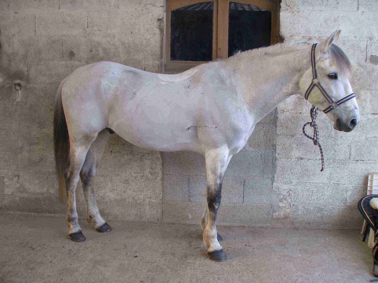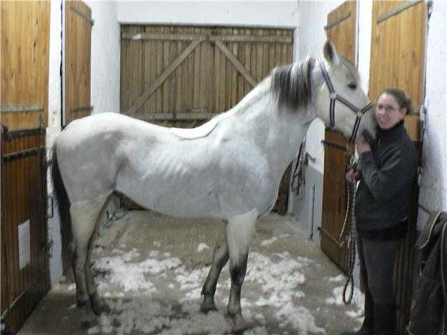 | Dire merci | pour te donner une idée, voila le cheval que j'avais au travail l'hiver dernier (acheté par un ami en juillet 2008 sur coup de coeur mais n'arrivant pas a le faire reprendre de l'état) Marquez PRE 8 ans, ancien cheval de corrida (d'ou la super cicatrice de l'épaule droite !), récupéré après 1 an 1/2 sans travail, ni soins Il s'avait faire beaucoup de chose mais comme défait physiquement et mentalement, il ne reprenait pas le dessus ! La c'est quand je l'ai récupéré, et après dépoilleuse ! (décembre 2008) [url=https://www.1cheval.com/membre/services/photos/images/50327.jpg] ![]() [/url] Celle la date de 4 mois plus tard ! (début avril 2009) avec ente temps : remise au travail, visite dentiste et ostéo, et rations composées de riz, orge, avoine, mais, granu + huile de tournesol [url=https://www.1cheval.com/membre/services/photos/images/50328.jpg] ![]() [/url] Il est reparti chez son proprio 2 mois après qui était très content ! |