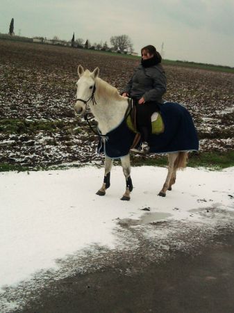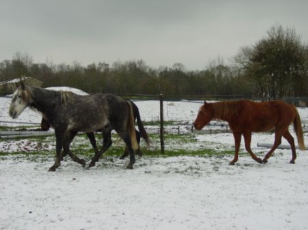 | Dire merci | Un petit bonjour de Kouros ![]() Il y a une bonne petite couche par chez nous ,c'est top Vendredi soir j'y suis allé pour essayer la selle de dressage que j'aurais à noël ,je l'est essayé dans le pré et il a été trop mignon ,vraiment il n'a rien dit ,il devait se demander ce que je faisait il avait envie de rejoindre les copains mais il attendait gentillement que je le lui permettre, c'est un amour |