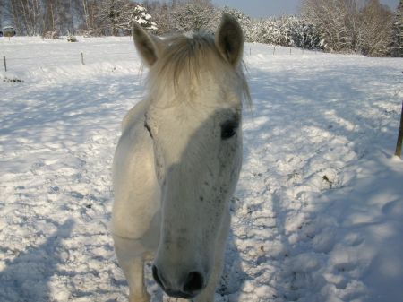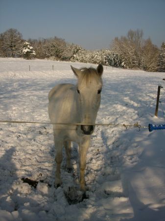 D'accord, pauvre grisette ! Moi pareil dès que la neige commence à disparaître, je vais remettre Rond au boulot avec séance de longe et balade montée. Oui il a drague mais la demoiselle, ça ne lui a pas trop plut, elle a essayé de lui envoyer un postérieur à travers les files électriques....la chipie .... bien oui c'est une fille... quoi ! ![]() |