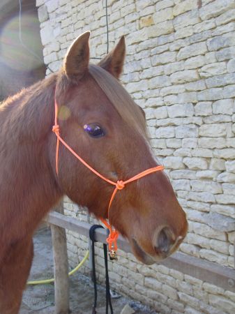 | ahhh, il est trop beau avec son nouveau licol le loulou !!! oui il a franchement progressé et ça fais plaisir a voir !!! je suis fiere de lui et contente pour vous que tout aille pour le mieu maintenant !!! |