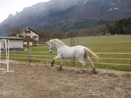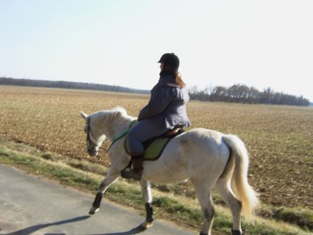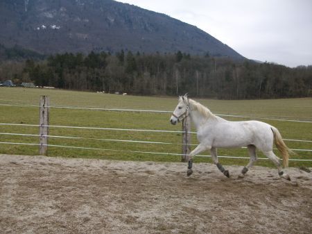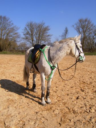 Déconnecté | Oui c'est ce que je fais, ça marche de temps en temps, mais des fois, rien à faire, il trottine... ![]() En fait, il a énormément de sang, du coup avant de le monter en extérieur, je suis obligée de le défouler en carrière sinon c'est "sport" en balade... Très gentil mais vif ! ![]() Depuis quelques temps, je le monte en carrière et ça va mieux. Mais j'avoue que je manque vite d'idée de boulot en carrière. A part des transitions, des arrêts, des cercles, passage de barres au sol, je n'ai pas d'autre idée...Le saut, j'ai peur et je n'aime pas, par contre je le fais sauter en liberté, il saute super bien ! J'ai monté jusqu'à 1m, et sans soucis ! |