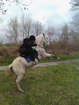 | Dire merci | re coucou tous le monde !!! alors ce tento, ça a était THE pur aprem franchement !!! Nous avions prévu ( moi et vakiraa ) d'aller bosser les loulous en carriere au haras !! !! arriver laba on detent au trot et au galop !!! pour doudoune aujourd'hui ça sera désensibilisation a un peu tous on va dire !!! Donc deja ça sera un peu de saut pour désensibilisé madame au couleur des barres car elle a peur ! un début un peu chaotique, mais une fin génial ( vous verez la vidéo ) Ensuite c'était désensibilisation a passé en dessous d'un fil ! alors la, ca a était autre chose, mais a la fin pareil, il y a une amélioration !Ensuite, la rentré dans un box avec entrée étroite, pour l'habituer a une entrée de van, et là grosse surprise, ma doudoune rentre et sort comme si de rien était !!!Et pour finir, séparation en balade des deux loulous, et tous c'est bien passé !! voila , une aprem juste génial quoi !!! aller le temps de charger la vidéo et les photos et je vous met ça !!! ![]() |