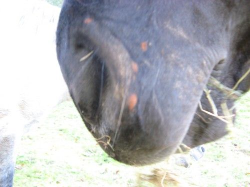 Dire merci | mon cheval et son copain de pre ont la meme chose : c'est rouge brique, et ca s'etend sur le nez et les levres... ca ressemble a des champignons (micose?). Quelqu'un a deja vu ca ? |