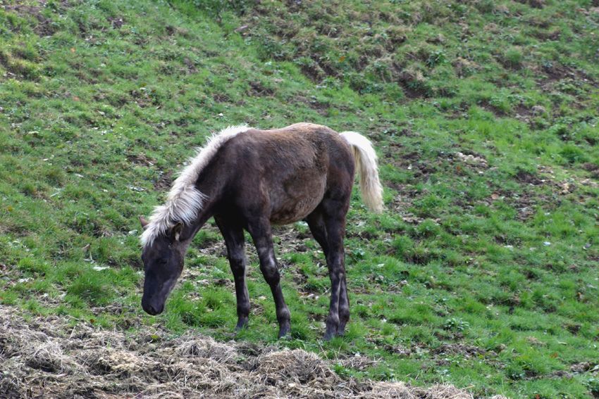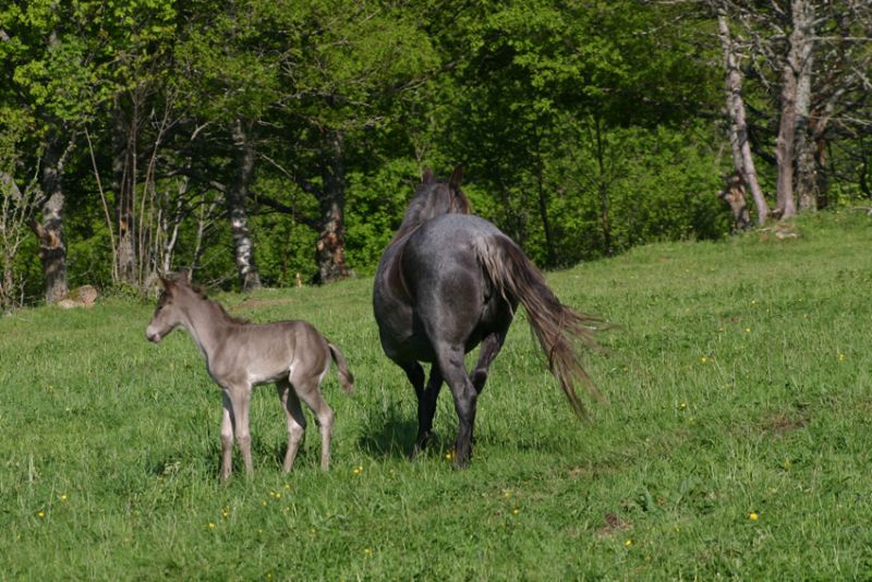 | Dire merci | predallys : c'est très instructif ton post, cela permet de voir l'évolution des poulains en adultes et aussi en fonction du lieu d'habitation! Saurais-tu prédire la future couleur d'un adulte en l'observant poulain? J'aimerai savoir quels sont les signes qui permettent de déterminer qu'un poulain deviendra chocolat très foncé aux crins blancs adulte. |