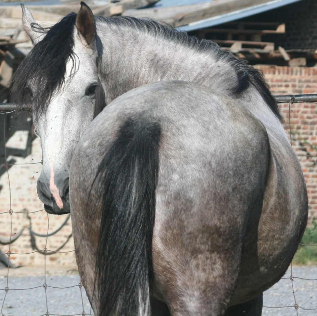 | Dire merci | les gris ils évolur tous différemment .... Donc dur de donner un avis ! Mais bon , je dirai , qu'il va s'éclaircir sur le corps pour être quasi blanc et ça crinière va petit à petit devenir grise clair ! ( c'est comme que celui que je monte éclairci ) Ou alors il va reste comme ça pdt quelque temps Ou il va garder la crinière foncé et eclaircir du reste ! Ou alors il va faire des pommelures bien marqué ! Sinon Méga pour le poulain , faut voire après la mue si il est déja bien clair, il risque de rapidement devenir blanc Si il est il est juste parsemé de poils blancs ,je pense qu'il grisonnera plus ou moins vite ! |