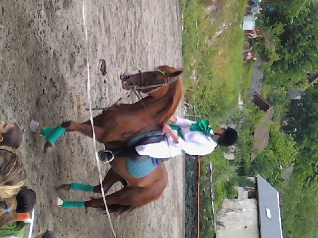 | bonjour tout le monde voila enfet dans mon centre equestre j'ai un cheval prefere ki sapel kaline,jladore prsk bizaremen elle a u caracter: elle charge a l'obstacle et tt et tt et je galere un peu avec elle mai jlador kan mem je dirai mem ke sa meclate de me faire trimbaler!! encore hier soir on fait obstacle et jmetai jamai autan fai embarker de ma vie mai j'ai adorer!! bizar nn????? |