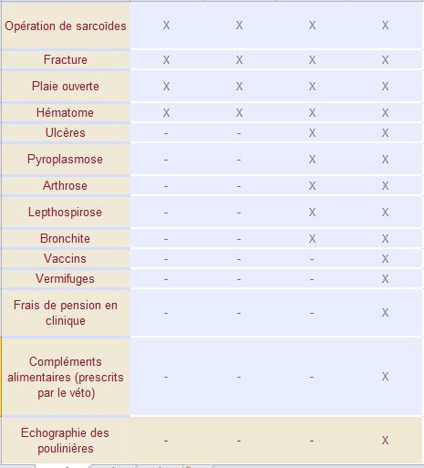 | Dire merci | Par contre, ce que je n'ai pas saisi, c'est s'il y a des frais véto à 7000€ pour une opération et que le cheval meure finalement, est ce que la partie décès rembourse aussi 5000€ ? Donc 10000€ de remboursés sur une opération qui aurait mal tourné. Si vous avez souscrit une option de frais vétérinaires nous vous rembourserons jusqu'à 5000 € pour les chirurgies de colique. Si le cheval décède à la suite de cette opération, nous vous remboursons sa valeur (en plus). En revanche si vous n'êtes assuré qu'en mortalité, sans frais vétérinaires, l'opération est à votre charge et nous règlerons uniquement la valeur du cheval. |