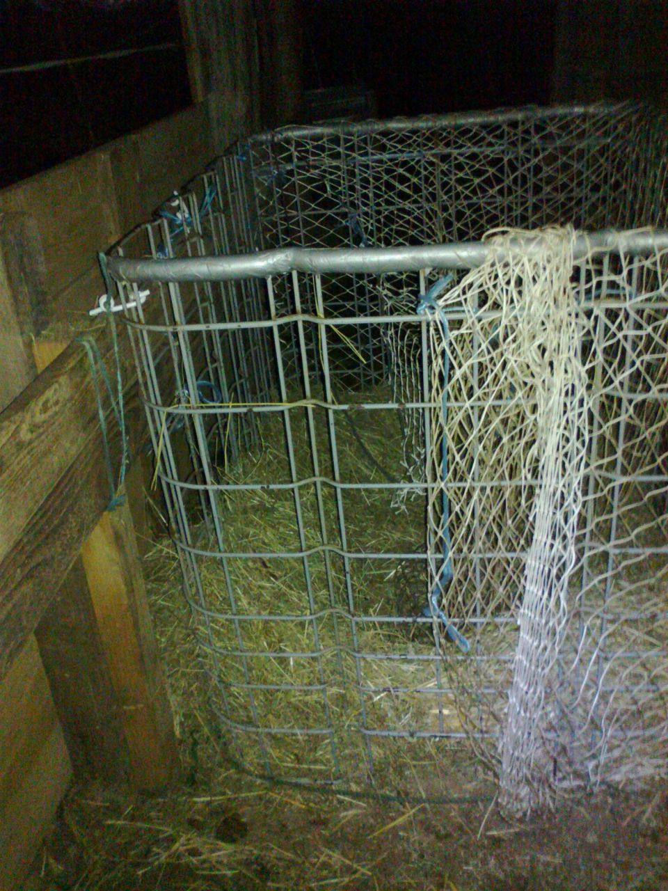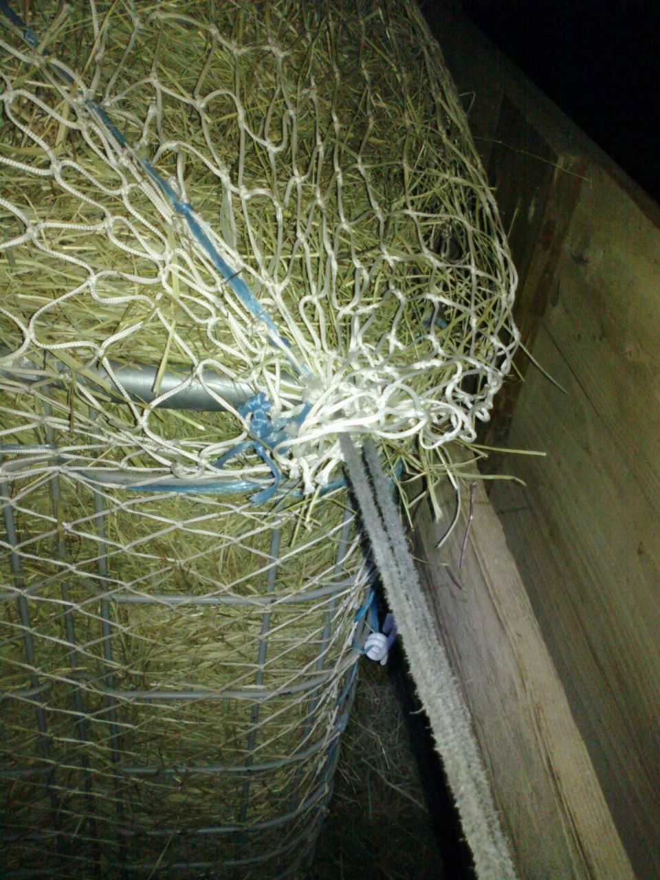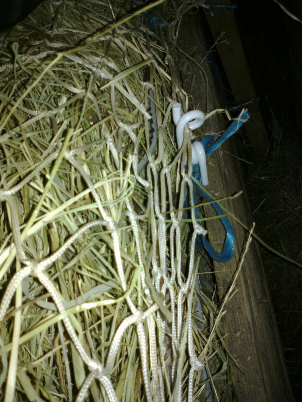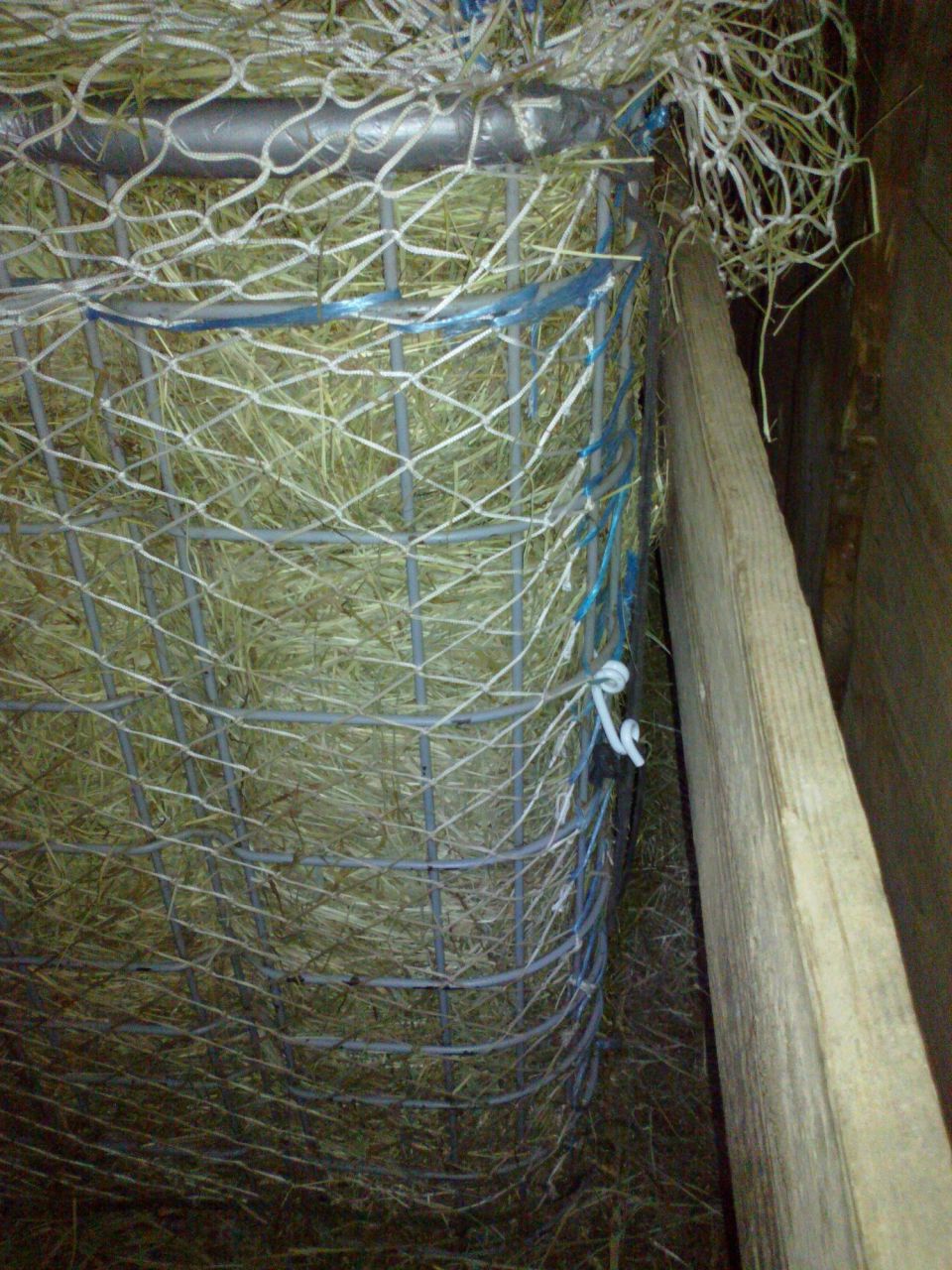 DéconnectéDire merci | En tout cas moi je n'ai jamais eu aucun problème. Je n'ai jamais vu mes chevaux essayé de passer un membre par dessus, qu'ils soient poney, poulain, adulte... le "râtelier" monte assez haut, et la base du système se trouve au dessus du genoux de mon plus grand cheval (sur la photo c'est pas flagrant car on été en litière accumulé à l'époque donc il devait bien y avoir 20 voir 30 cm de fumier sous les sabots) Et puis en fasse d'eux il y a d'abord une balle de foin puis un mur formé par d'autres balles empilées. Alors de la a vouloir passer à travers... Et même si ils passe un sabot, celui ci ne peut pas rester coincer, il est assez facile pour le cheval de le retirer par lui même. |