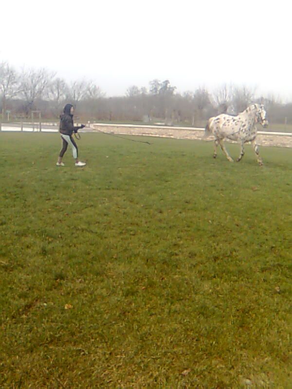 | Dire merci | il a 11 ans cette année, je le bosse en filet sans gogue ni enrenement, je fais un peu de tout avec lui, je commence a le travailler en place. |