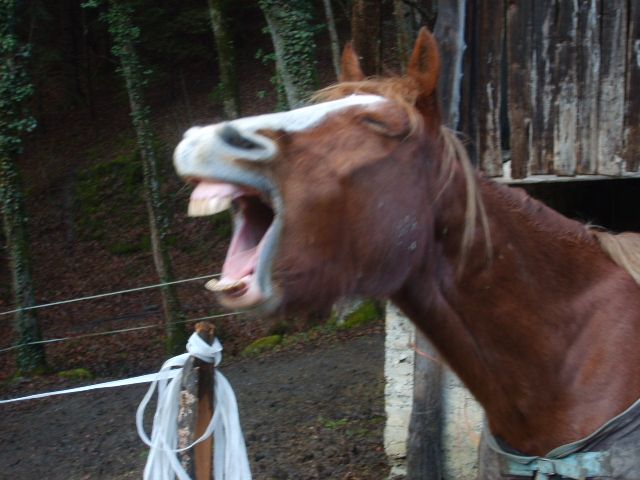| Clever c'est la mienne avec les mouches qui te choque ? je te rassure moi elle me fait peur cette photo....(c'est ça le problème des APN trop précis ) je ne la regarde jamais mais bon vaakira voulait des grimaces...en voilà une grosse horrible de secouage de tête...