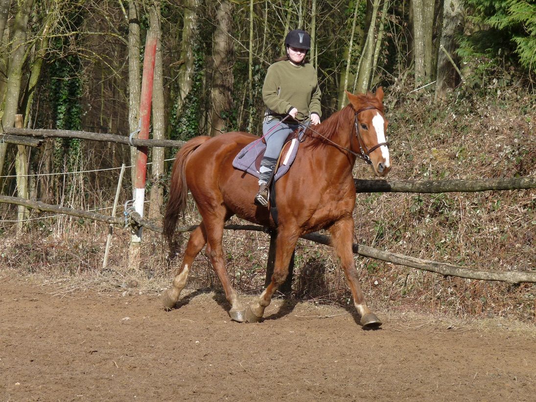 DéconnectéDire merci | On te sent crispée, raide comme un piquet, les mains vraiment dans l'entre jambes. Ecarte les d'avantage à défaut de les relever. On a l'impression qu'elles sont posées sur le pommeau. Recule légèrement les épaules également, ça t'aidera pour mieux positionner tes mains ![]() Sinon étriers dans la pointe des pieds, jambe descendue qui ne part pas en avant. +1. Bonne continuation avec ton bel alezan edit : devancée ! Message édité le 21/02/10 à 21:03 |