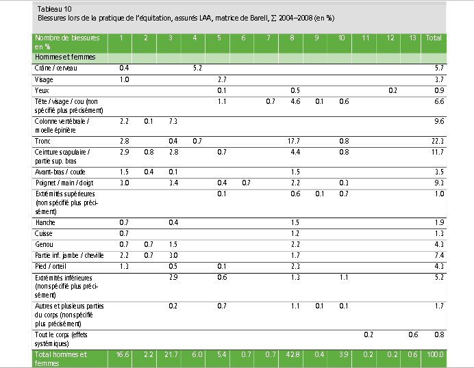 | Dire merci | 1er lien du sujet. Lien Je ne sais pas si ça répondra à ta demande nicolec. Je n'ai pas le temps de lire le document au complet. J'ai lu la conclusion en diagonale: "La principale cause de décès est due aux traumatismes crâniens. [...] Peu d’étude ont analysé les facteurs de risque associés à la mortalité. Il n’y a pas eu de réelles campagnes de prévention mises en place afin de réduire le nombre et la gravité des accidents liés à la pratique de l’équitation en France. Les principales mesures prises ont consisté en l’obligation de porter un casque pour les enfants dans les centres équestres ainsi que pour ceux qui pratiqueraient l’équitation en dehors de tout cadre institutionnel. Il est également obligatoire en compétition, chez les amateurs et professionnels dans la plupart des disciplines sportives. Ce casque doit être homologué selon les normes officielles de sécurité de chaque pays. " Il faudrait prendre le temps de lire l'étude en détail je pense. |