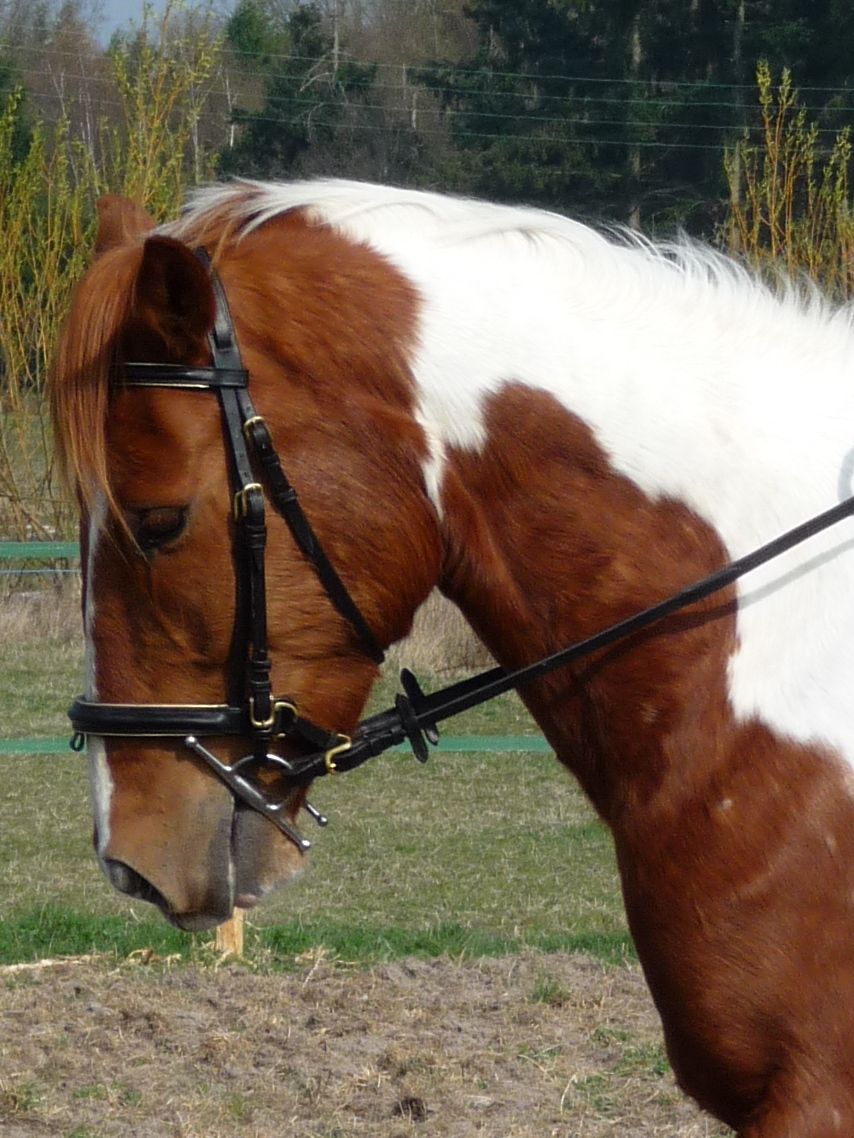 j'ai donc dû refaire des trous pour un mors, par contre utiliser un hackamors avec ça ne sera certainement pas possible avec Zarabe, il lui lui tomberait sur le nez...mais à part ça, franchement, j'en suis plus que ravie.