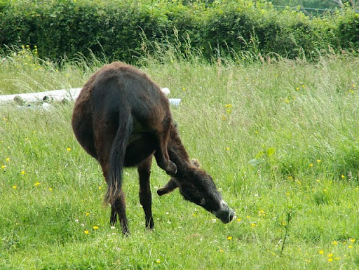| Dire merci | Dans leur pré, Magie a une petite gratouille... et Scarlett qui a trouvé un crottin parfumé :25: (elles sont pourtant les seules à fréquenter ce pré) Quant à Thoranche, toujours... occupée ! |