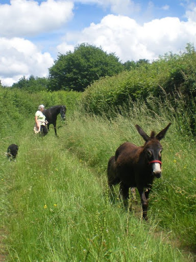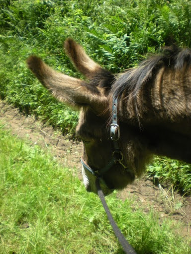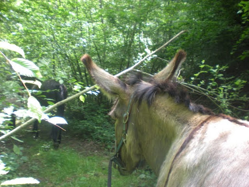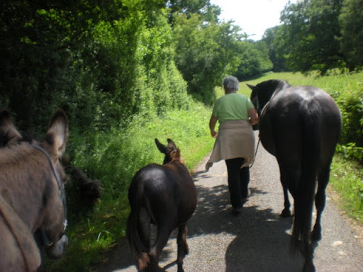 | Dire merci | Aujourd'hui, après (ou avant ? ET avant ?) l'orage, le ciel est clair, petits nuages bien dessinés, on part en balade longue, la 1ère pour Petite Magie, un test aussi pour Vieille Titi... De jolis chemins que nous sommes les seules à emprunter... Et, euh... Je doit avouer, Magie est vraiment extra-ordinaire, une ânesse à 6 pattes !!! :24: Parfois, il faut négocier : "Hmmm ! L'herbe, là, elle est 'achement meilleure !" Gus,toute langue au vent :25: Magie, qui a vu un "truc"... Oui, mais j'chuis trop p'tite ! leure: Si-si, il y a quelques muscles... avec de la bonne volonté :20: Nos grandes routes... Magie se dépouponne et prend un beau poil noir très brillant, mais il reste encore beaucoup de roux de bébé : elle est encore loin de 2 ans en septembre... Une petite branche basse a posé des problèmes à Thoranche qui n'accepte de baisser la tête devant "l'ennemi" ! Scarlett est en version "oreilles escamotables" c'est pratique ! et Magie... euh... "Y a un problème ? Où ça ???" :25: Scarlett abuse de la compréhension de Chacha et goûte un peu trop les sols des sous-bois... J'ai peur qu'elle n'en prenne l'habitude et ne tente le même coup au "travail" Je n'ose imaginer ça avec la "voiture" !!! : :1: Une rencontre colorée sur le retour Voilà, tout le monde a été particulièrement sage, pas de fugue de Gus, des filles obéissantes, pas de fantaisies exubérantes de Magie, pas de chasse au chien non plus, pas de coup de cul "elle a tout d'une grande !" Tout juste une petite grimace tout à la fin... Balade de 1h30 mais là, on a mis plus longtemps avec de nombreuses pauses broutt-broutt pour économiser la jeune et la vieille, je parle de Titi, bien sûr ! :20: |