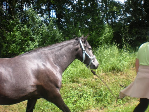 | Dire merci | Diego, je ne la monte pas... encore car elle n'est pas encore débourrée, c'est au programme de l'été. Vu que je ne suis pas du modèle haricot vert, je ne tiens pas à lui bousiller le dos. Elle-même est rondouillarde, ça ferait vite trop lourd pour ses articulations... |