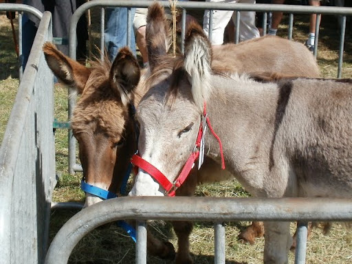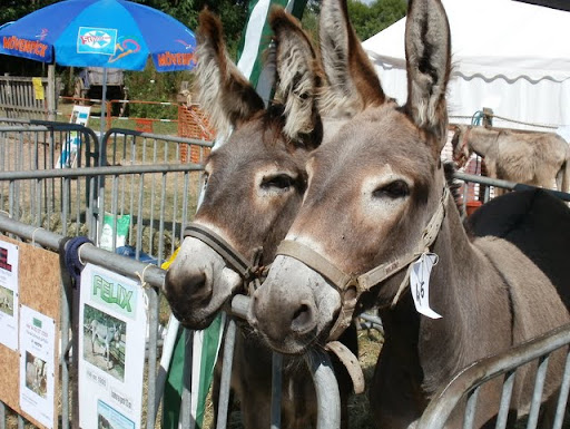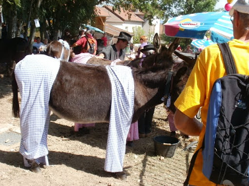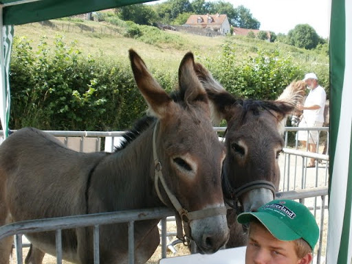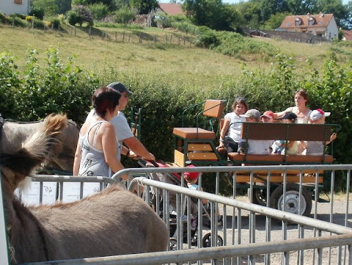 | Dire merci | Baron, petit village de Saône et Loire, fête de l'âne 2010 C'est à Baron que j'avais découvert un tout bébé d'un mois, Scarlett, pour qui j'ai, bien entendu, craqué ! Cette année, on y trouvait un peu de tout, de l'assez beau... ...du craquant... ...et du moins beau... (la photo gomme sa maigreur...) De l'original : une shetlane (= mule x shetland) bien craquant mais 3 longes pour assurer ! (elle a 1 an) un attelage de charolaises, région oblige ! (10 km de Charoles) Elles suivent leur "dresseur" comme deux gros toutous ! un défilé d'âne culottés, tradition de l'île de Ré et un âne que j'ai beaucoup plaint, harnais mis n'importa comment (je viens de le voir sur la photo sinon j'aurais réagi sur place !) grosse voiture pleine de mômes à trainer toute la journée... Bon, j'ai gardé les meilleurs pour la fin, demi-frère et soeur de Scarlett, les plus beaux de toute la foire, bien entendu !!! (moi ? non, aucun préjugé, non-non !) Après tout ce temps en plein soleil, le chien a été ravi de trouver au retour un joli coin de rivière |