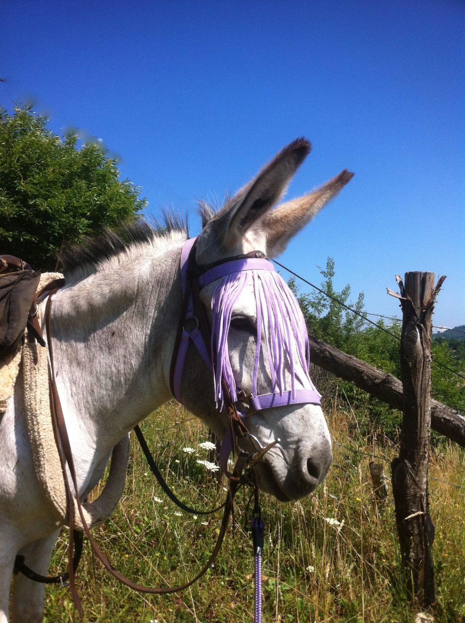DéconnectéDire merci | Ajd les 3 chevaux étaient sous le cagnard, et Albert le bourricot à l'ombre du seul arbre disponible... Hier Maman est sortie, montée pour la 1ère fois toute seule avec lui ![]() |