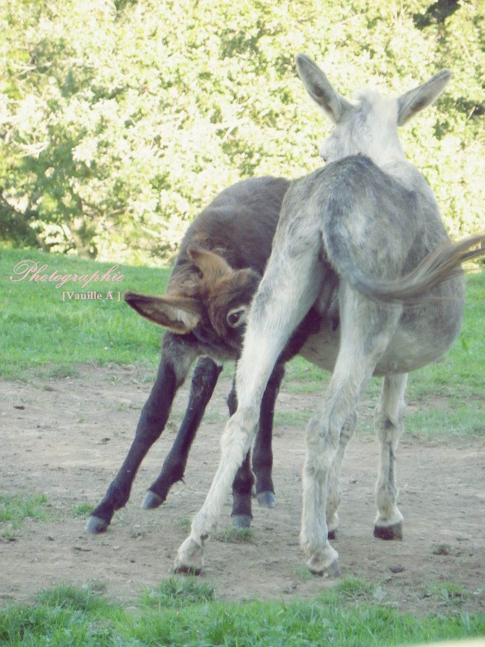 | Dire merci | Lors de la prochaine balade il faut que je teste la liberté avec mon âne (avec une aide à pied). En tout cas sont très intelligent ces ânes. Je ne connaissais pas du tout avant d'avoir le mien, quand je l'ai eu et qu'on m'a dit "il ne connait strictement rien" et que j'ai lu "ça ne s'éduque pas comme un cheval" je me suis dis merde, je vais grave galérer pour lui apprendre au moins le strict minimum, et en fait pas du tout. Rien que pour donner les pieds, même si ce n'est pas super au point, il est plus réactif et plus léger que mon cheval ! Et pis rien à voir avec les chevaux niveau câlins ! Dès qu'il voit qu'on approche de l'entrée du parc, il débarque vite vite pour avoir ses grattouilles. |