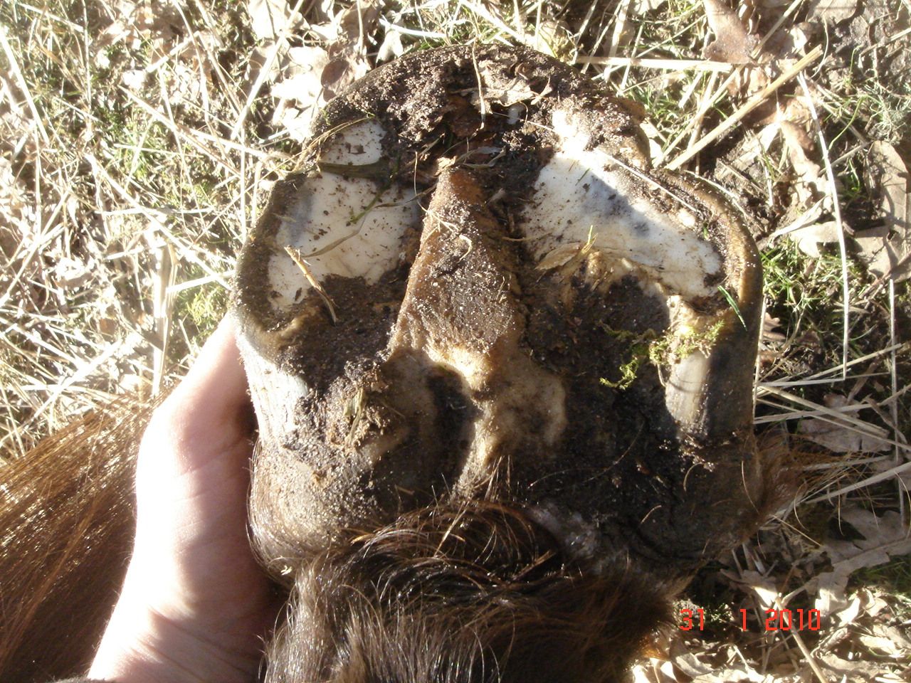 Déconnecté | dommage j'ai des photos des pieds de ma jument, notamment après 130km de rando sur cailloux mais c'est pas de profil ni de talon (juste de la sole et la fourchette |