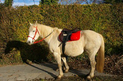 | Dire merci | j'ai un croisé trotteur, mais je ne sais pas avec quoi il est croisé, on m'avait dit que la père était un type apaloosa, mais mon cheval est gris, par contre, il n'a quasiment pas de crins et de queue, comme beaucoup d'apaloosa; alors je ne sais pas. Il fait 1,67, il est est bien costaud, il est assez agréable sous la selle au niveau des allures, il n'a peur de rien, est très sur de lui; il est très très joueur, c'en est même chiant parfois! Il n'a que 5 ans aussi. ![]() |