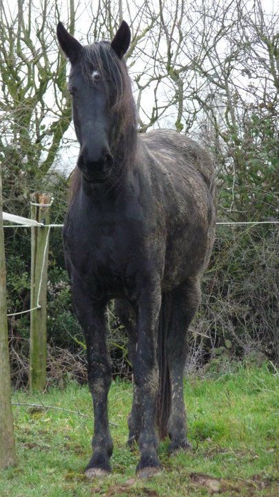 | Dire merci | Topaze, trotteur x frison, 3 ans, en débourage au club. Une vraie gravure, du tempérament mais un gros coeur et très volontaire. Dsl, je n'ai pas mieux comme photo... ![]() |