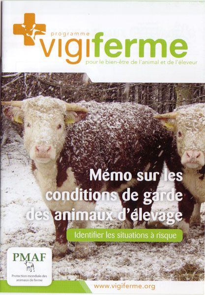 | Dire merci | Une initiative sympa de l'assoc "Protection mondiale des animaux de ferme" (PMAF) vient d'éditer un petit guide sur les conditions d'hébergement des animaux. Il parle notamment de l'accès à l'eau et à un bon abri, des résistances aux variations climatiques des bovins, caprins, ovins.. et des équidés, qui ne sont pas oubliés !![]() ![]() Il est disponible auprès de la [url]www.pmaf.org[/url] |