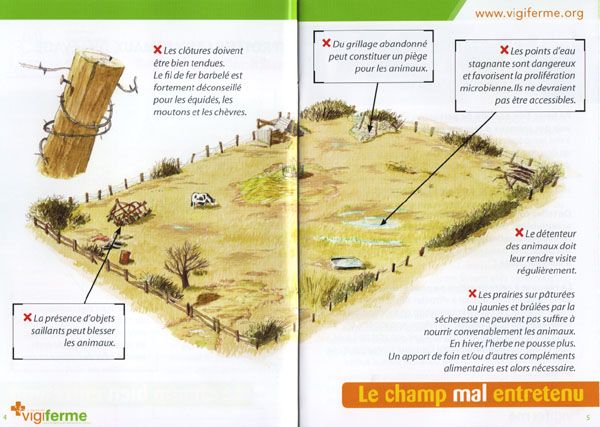 | Dire merci | Ce guide a deux versions, dont l'une de 144 pages destinée aux maires, gendarmes etc... et leur permet d'objectiver des cas supposés de maltraitance. Il y a un rappel de la législation, et des dessins clairs pour évaluer la situation, par exemple des "pointage de chevaux" selon l'état général (de "charnu" à "extrêmement maigre" . Le but est d'aider les forces de l'ordre appelées sur place pour des signalements, mais aussi d'informer le grand public pour éviter les plaintes abusives basés sur des critères anthropomorphiques et non animaux. |