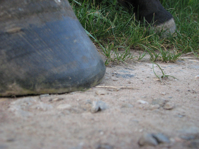 | Dire merci | alors j'ai (enfin) pensé à prendre les pieds de Vicky en photo après parage (par mon maréchal que j'adôre, parce qu'en plus d'être super beau, il est super à l'écoute des chevaux, très mesuré question ferrage/pas ferrage, lui il fait selon le cheval et son mode de vie, bref, une philosophie que j'aime). donc voila, j'aimerais votre avis sur le parage, pas pour dire "il a bien fait son job" ou pas, mais pour savoir si vous auriez des idées d'amélioration par exemple. alors, historique du bourricot: cheval ferré pendant de longues années, SF bien gros comme il faut, pieds bien larges, déferrage avril 2007 lors du passage à une vie 100% pré. quelques balades, 2 par semaine environ, un peu de boulot (plat principalement, sinon étho/jeux), mais sinon, pré (il ne bouge pas bcp, mais ne supporte pas l'enfermement) a été ferré de janvier à avril 2009, suite à un abcès de pied (ferrure à plaque amovible pour les soins, puis ferrure avec plaque silicone le temps que la sole s'épaississe, car il était assez douillet vers noel 2008), puis au déferrage le MF à Lyon a fait n'imp (a "oublié" de raper la paroi....), et donc depuis juillet dernier, on essaie de rattraper les grosses seimes qui s'étaient créées.. antérieur droit ![]() antérieur gauche ![]() postérieur gauche ![]() posstérieur droit ![]() AD ![]() AG ![]() AG ![]() le souci du moment, en plus des seimes, c'est qu'il a surement les pieds secs, mais ça c'est surement du au terrain où il était jusqu'à présent (pas d'herbe donc pas de rosée matinale), mais depuis dimanche il est dans un pré en herbe, donc ça va s'arranger tout seul ![]() voila, merci de votre avis ![]() pti bonus, les jolis petons de la jument de ma soeur ![]() ![]() elle a des pieds super creux, elle, mais une corne super dure mon MF est amoureux de ses pieds |