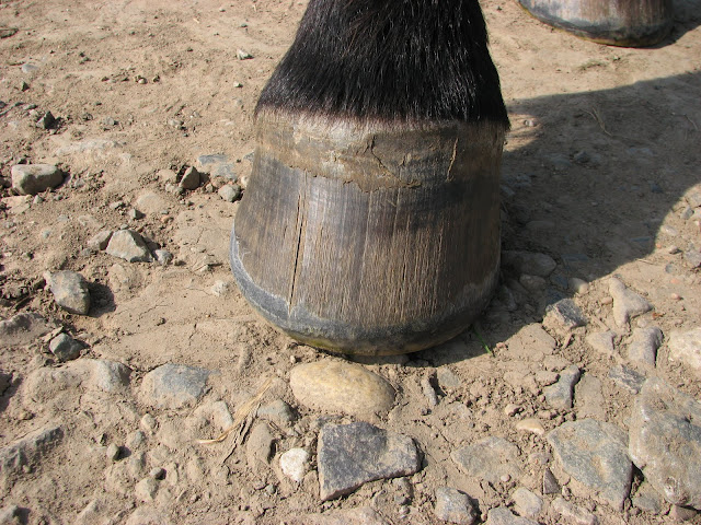 | Dire merci | pour la comparaison avec le pain et le bois, vous pensez pas que ca peut marcher de la même manière? ![]() perso je vois de gros changement dans la qualité de corne de mes chevaux, selon si il pleut, si on est en été, ou en hiver là la pluie n'est pas tombé depuis plus d'une semaine, les pieds de mes chevaux sont archi sec, et la paroi se "fissure", se craque, juste la dernière couche par contre dès qu'il pleut le pied redevient souple (surtout la sole, ca se voit et ca se sent) et ca ne se craquelle pas, la paroi est lisse et de bonne qualité. pourtant mes chevaux ont une qualité de corne excellente! ils sont pieds nu, et je vois bien que c'est vraiment suivant le temps, et surtout, tout les deux ont les mêmes "symptomes" en même temps, sans changer d'environnement, de nourriture, ou de travail |