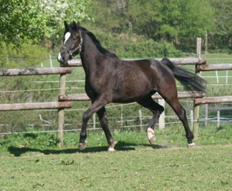| Dire merci | Lien ton lien trak ! ![]() Coucou !! j'ai enfin 5 minutes pour vous raconter ma visite et mon impression ! Eros est un magnifique petit pur sang arabe, très très bien conformé avec effectivement une superbe attache d'encolure et une morpho intéressante. Il mesure 1m53. Il est effectivement hétérozygote. Je n'ai malheureusement pas pu le voir en action (temps pourri dégueulasse, pré pourri dégueulasse aussi d'ailleurs). J'ai pu observer quelques uns de ses produits et ça donne de jolis résultats, bien conformé, joliment proportionnés et très curieux ! Le point faible d'Eros de l'Enclos que j'ai pu constater est un défaut léger d’aplomb sur le postérieur gauche et les jarrets un peu serrés, chose qu'il semble léguer à ses poulains (la fifille avait exactement le même petit défaut). Mais bon, c'est vraiment très léger, et je pense, corrigible par un bon parage dès le plus jeûne âge. Sinon le proprio, très sympa en effet, très au courant, assez pro et proche de sa clientèle. Je lui reproche seulement l'état un peu pathétique de certains de ses chevaux et surtout des juments à la repro (vraiment maigres et avec pas mal d'atteintes sur les membres). Mais bon, les juments pleines par contre sont rondes et bien portantes. Il propose donc la saillie en croisement à 400€, (en pur à 500€) en forfait (la pension de la jument est comprise dans le prix) et avec reconduction de saillie si jument vide pendant la saison de monte (il ne m'a pas parlé d'année suivante si jument vide en fin de saison). |