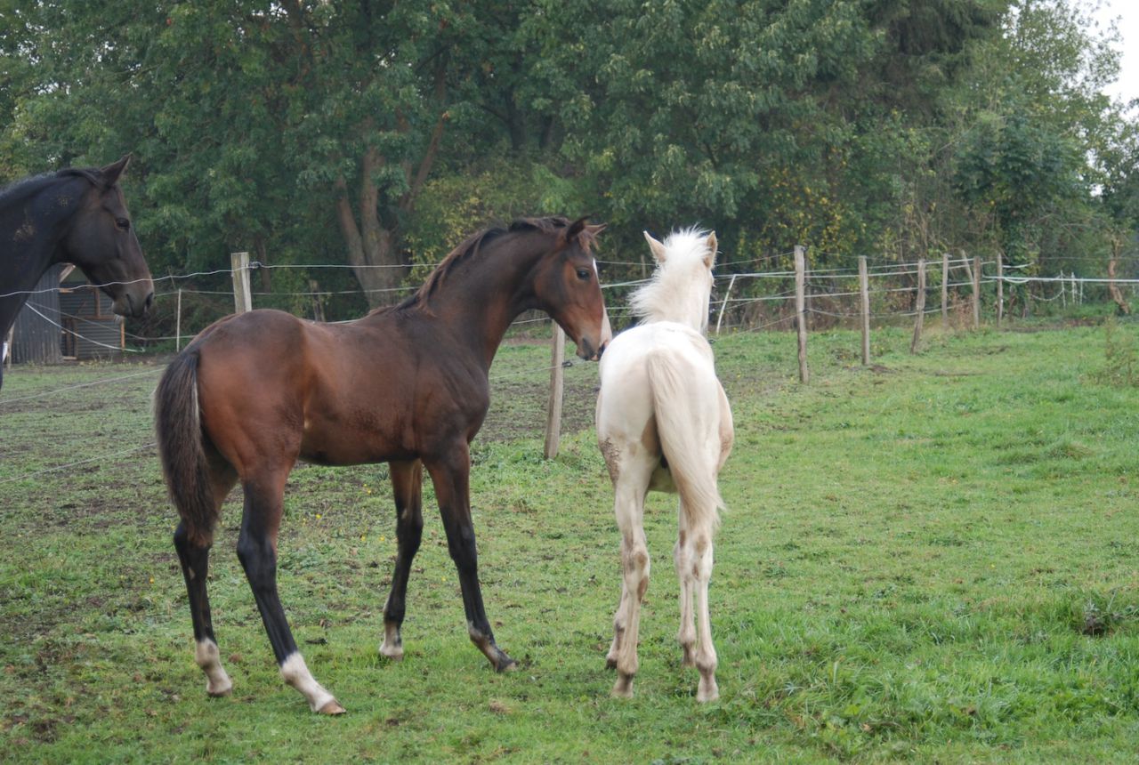 | Dire merci | Aucune embrouille quand on voit l'augmentation des frais d'entretien des chevaux cette année... De plus je reçois la revue Der Trakehner et on y trouve beaucoup de poulains dans ce budget en direct d'élevages dans les annonces, elle est à peine moins chère que le prix de vente moyen en Belgique (si c'était si bon marché elle serait déjà partie, même sans grande publicité!!!). Le "marché" du cheval est au point mort par ici, d'autant plus pour un particulier qui vend son cheval sans la réputation d'un grand élevage. Je ne l'ai plus vue depuis son sevrage (j'ai acheté sa mère) mais je peux vous affirmer qu'elle était magnifique à l'époque et que si mes moyens et installations me l'avaient permis je l'aurais prise aussi! |