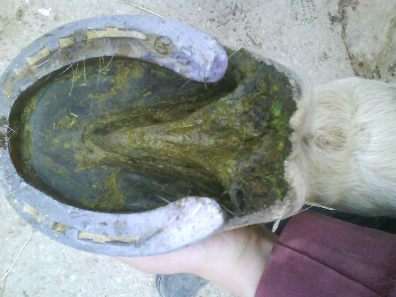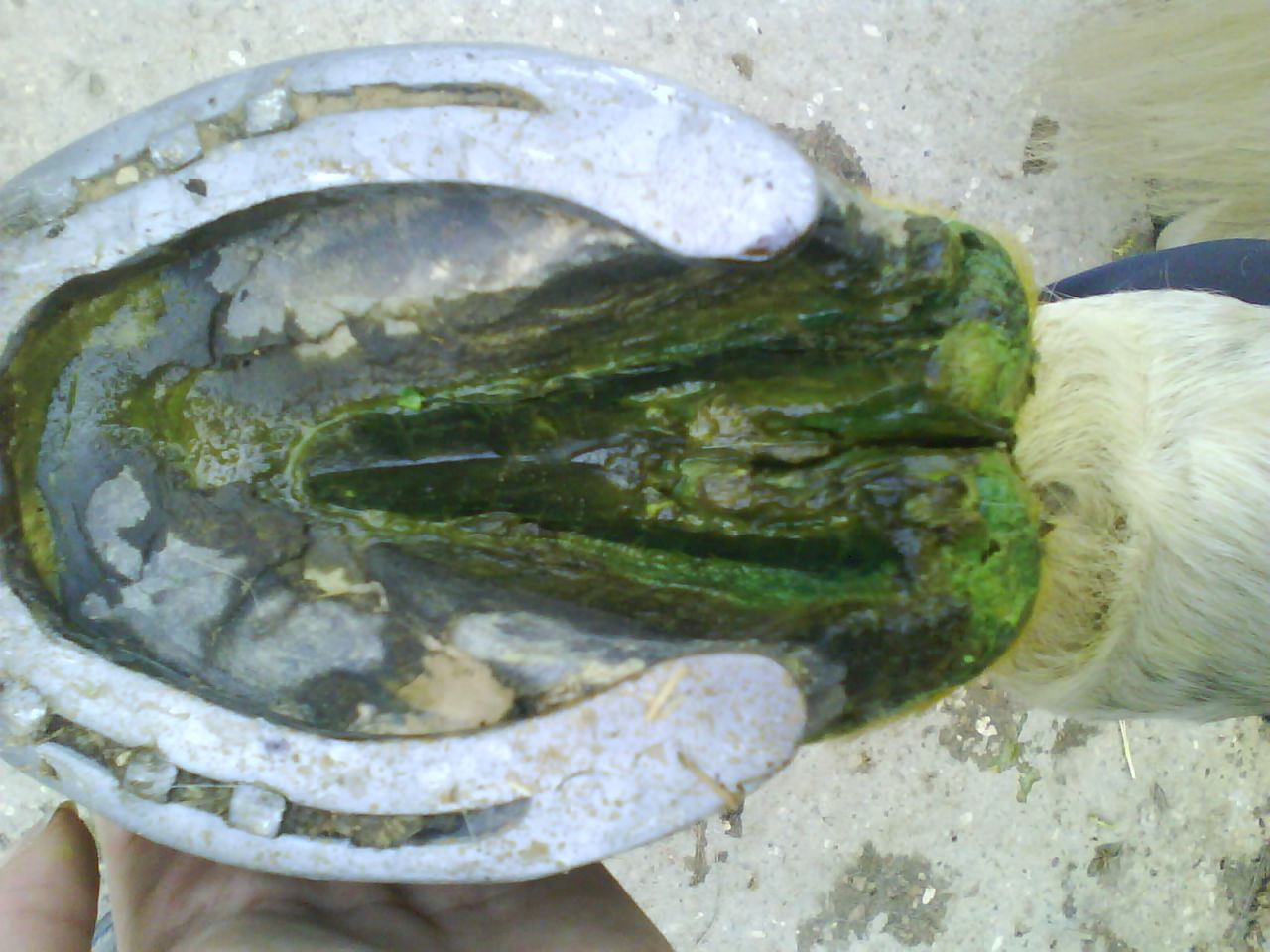 Cela fait un moment que je me bat avec la fourchette postérieur droite de mon cheval, avec cet hiver humide elle pourrissait et ne l'avais jamais fait en 8 ans.